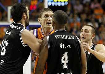 El Power Electronics Valencia pagó los nervios iniciales y le costó casi cuatro minutos anotar la primera canasta. Fue Dusko Savanovic con siete puntos consecutivos tranquilizó a los locales, que se habían agarrado a una intensísima defensa para evitar ceder el timón al equipo vasco.