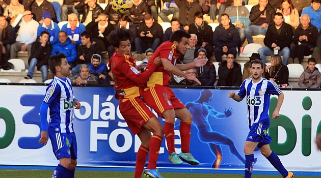 Cuando ambos equipos todavía se estaban adaptando al estado del terreno de juego, blando y resbaladizo después de las últimas lluvias caídas, llegó el error del defensa local Alán Baró, que dejó el balón a placer a Joselu para que el delantero tan solo tuviera que batir a placer a Dinu Moldovan.