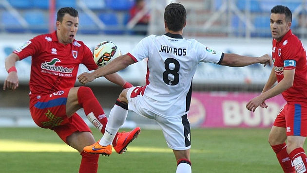 El partido, tras unos minutos de equilibrio, se decantó a favor del Numancia, que pudo irse con ventaja al descanso. Julio Álvarez (min. 29) buscó la escuadra pero se encontró a Miño. Y unos minutos después (min. 36) vio como su lanzamiento de falta directa se le iba unos centímetros por encima de la cruceta, con el guardameta visitante ya batido. Pero la ocasión más clara la tuvo otro exmallorquinista. Sergi Enrich cruzó en plancha y de cabeza un centro medido de Julio Álvarez (min. 40) pero respondió bien el guardameta Niño con una mano salvadora.