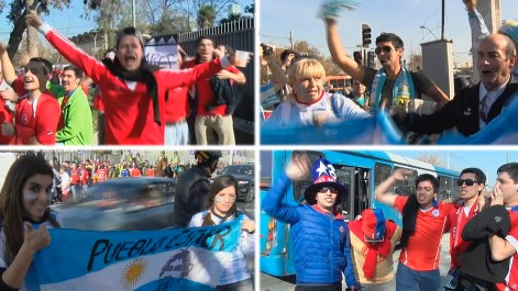 Desde muchas horas antes, tanto aficionados argentinos como chilenos, se concentraron en los aledaños para tomar posiciones y hacerse notar con sus cánticos de aliento a sus selecciones.