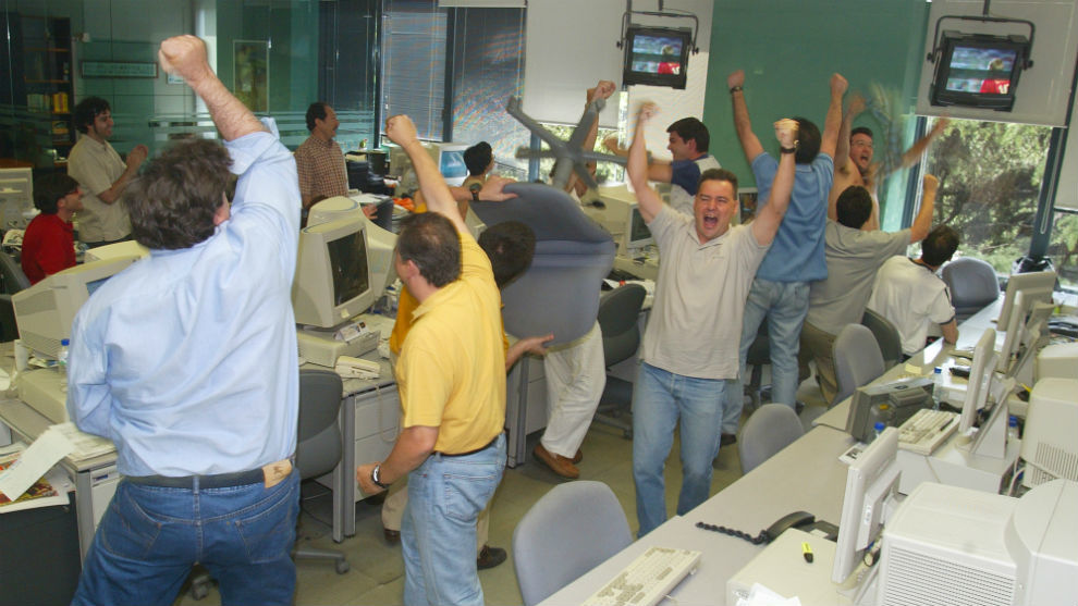 Los cacharros de Jesús Ramos, o mejor aún, los de Etxarri. Charo y Juanra, la Meg de bolsillo, la sorna del Vice, el descaro de Sinto, la autoridad de Josu, Juanjo con su teléfono, Garsi hablando en sevillano-argentino, la Doma y La Carreta, las mollejas de La Nieta. De Luis Valladolid a Font, a Cañi, Beato, Mercedes, Alejandro, Dani, Fede, Pardo, Sipi, Born, Héctor, Mar, Rafa, Juanjo, Pou, Isabel, Fran, Caneiro, El Maño, Prego, Pamplona, Almandoz, Amaia, Ergui,y Quique. Jo, qué noches. Los clásicos Amando, Paco Real, Suárez, Julio, Miguel Mata, Reta, Fernando Álvaro... los 'nacionalizados': Paco, Eduardo, Miki, Santi, Óscar o Quique. El seiscientos de Jesús, las llamadas de y a Barrero. El porte de 'Paquetón' Gómez, LA CRÓNICA, por Alberto Polo, o por Hernando. La coordinación de David. Los "Simmmmm" por el 'Simón' de Paco, los rondos de madrugada frente a la mesa de Josevi, Kike dibujando páginas mientras caza noticias, la camisa por fuera de Ángel, el carraspeo de Elías, la tortilla del Borbollón, la voz de trueno de Juanma.