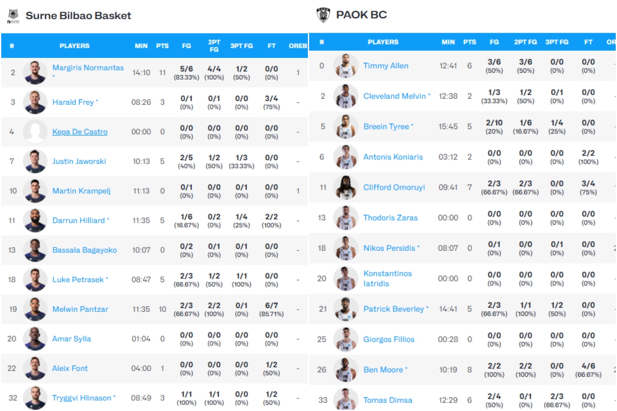 Bilbao Basket 25-25 PAOK