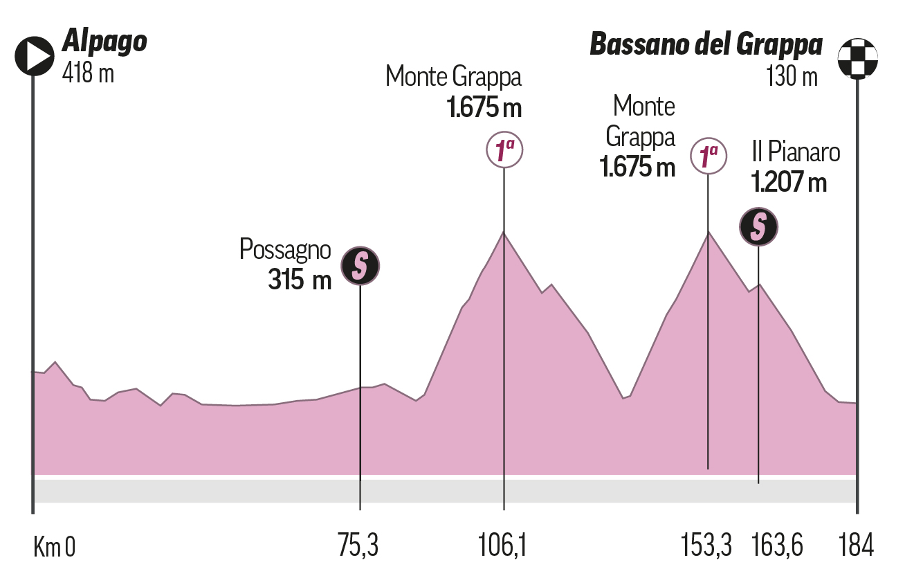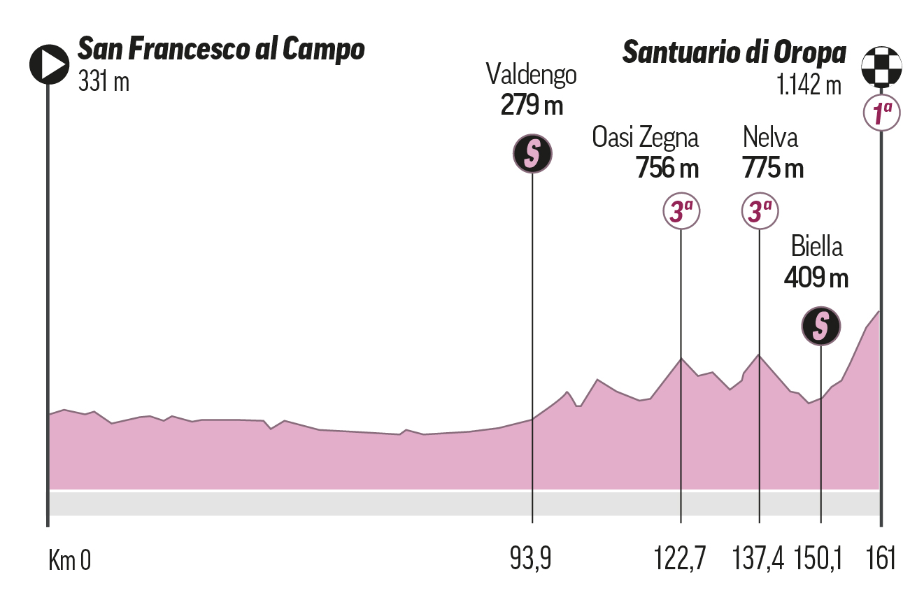 La 107 edición de la prueba, arrancará en Turín el 4 de mayo y tendrá el final en Roma el día 26. La 'Corsa Rosa', que tendrá 3.162,2 km en total con 42 puertos de montaña y 2 jornadas contrarreloj (68 kilómetros), presenta un trazado ideal para los 'cronners en el que se ha rebajado de manera expresa la dureza y los kilómetros. El menú plantea seis llegadas en alto (Oropa, Prati di Tivo, Cusano Mutri, Mottolino, Monte Pana y Brocon) y dos etapas más de montaña, Sappada y Bassano del Grappa.