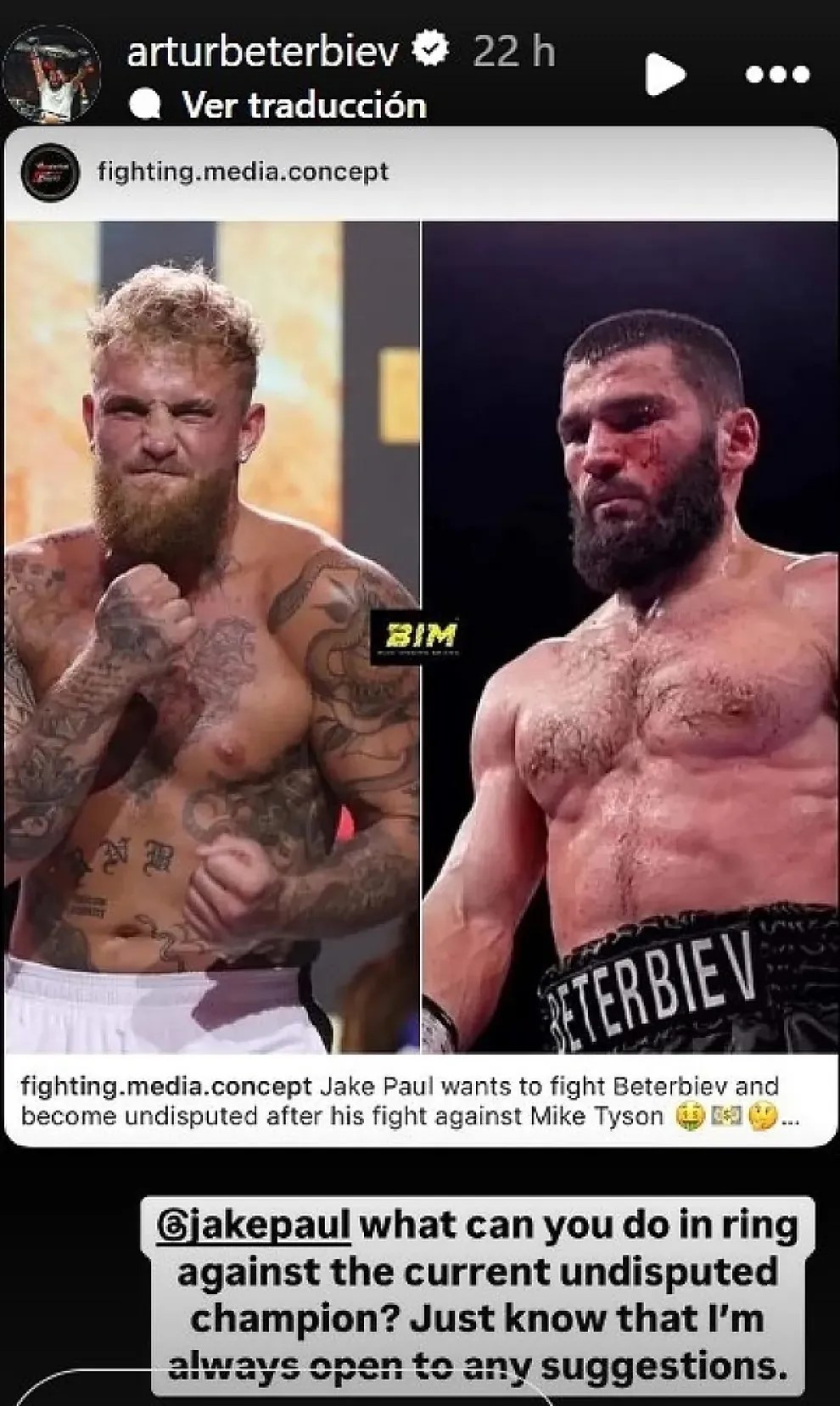 Beterbiev threw down the gauntlet on Instagram: "@jakepaul what can you do in the ring against the current undisputed champion? You just have to know that I'm always open to any suggestion".