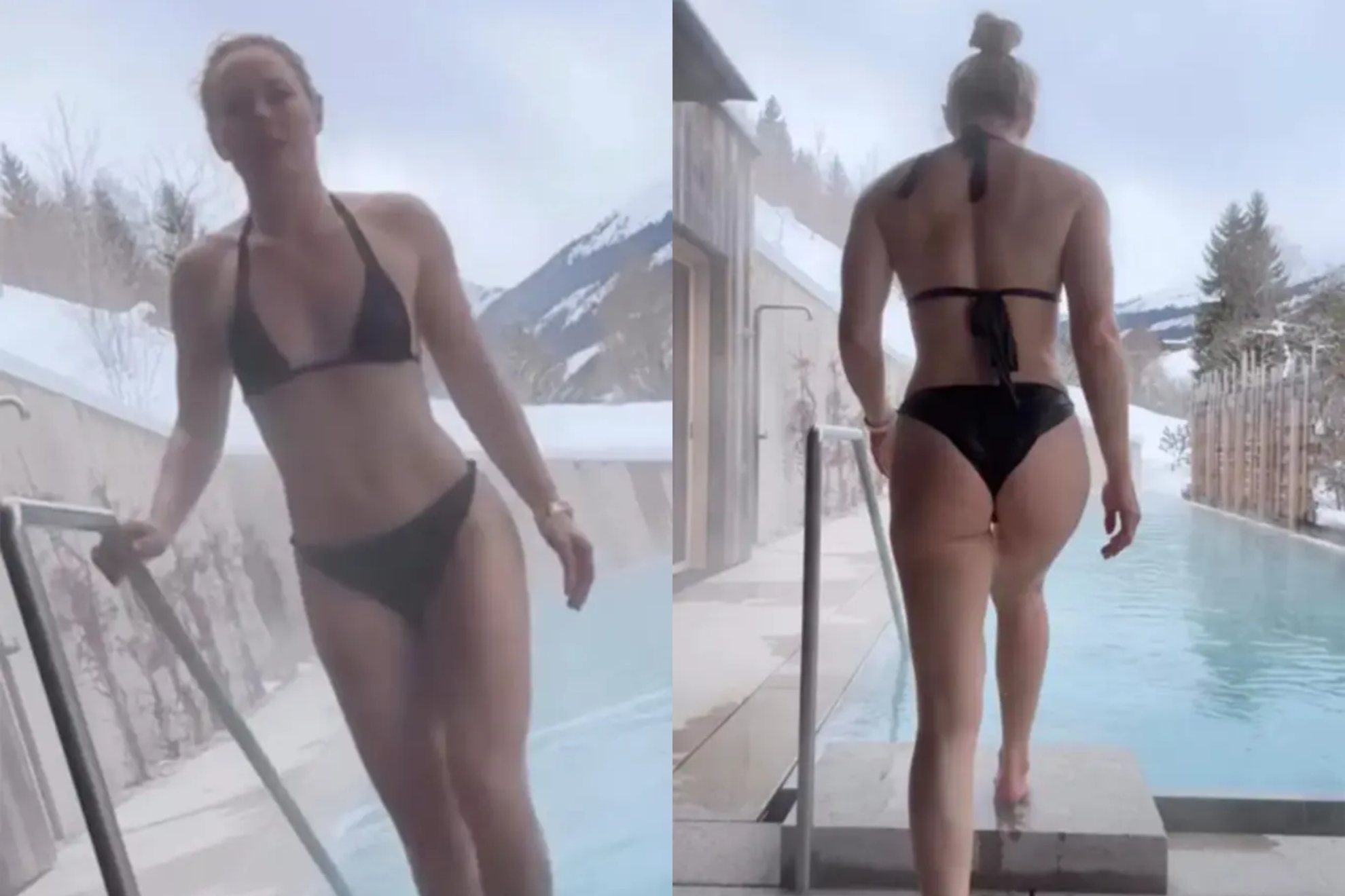 The American ski legend shared a short Instagram video from Saalbach-Hinterglemm, Austria, showing her in a heated outdoor pool while continuing preparations for a return to the Olympic stage at the 2026 Winter Games in Milan-Cortina.