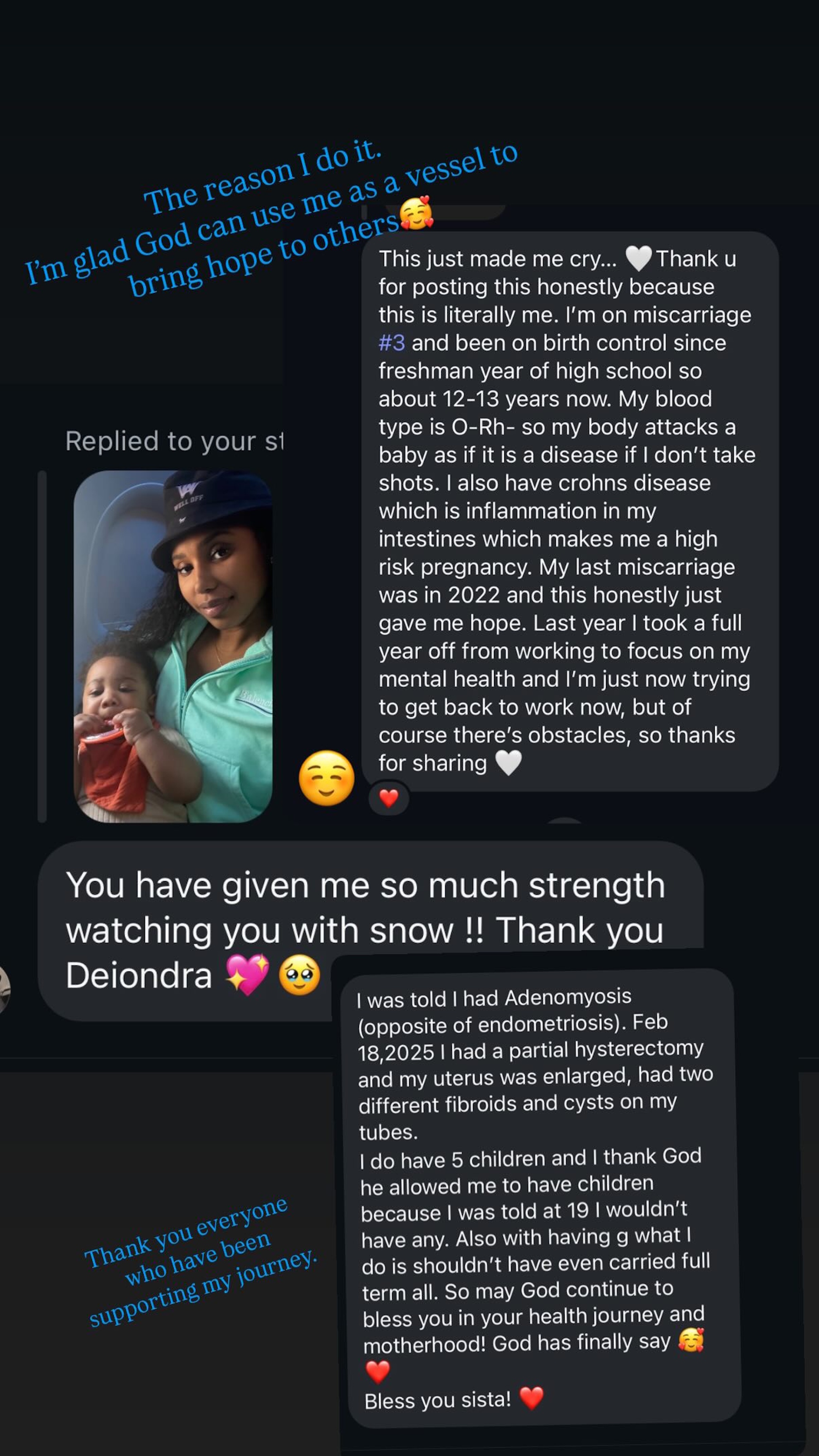 True to her transparent nature, Deiondra kept her followers updated through social media, sharing her prayers, fears, and eventual relief when Snow was finally able to come home.