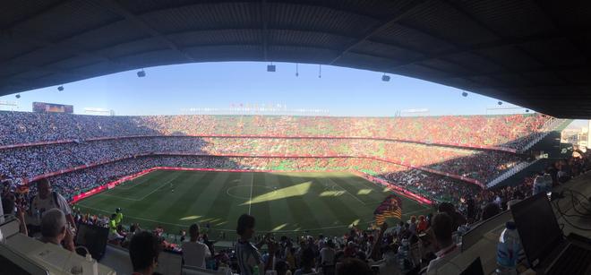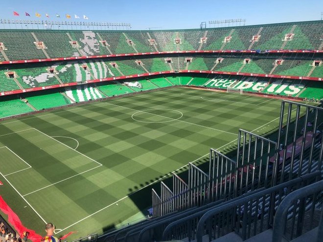 ¡Llega el @FCBarcelona_es al Benito Villamarín de Sevilla!#FinalCopapic.twitter.com/z73eUSpY5gAsí luce el verde del Villamarín a poco más de una hora para que se inicie la final.