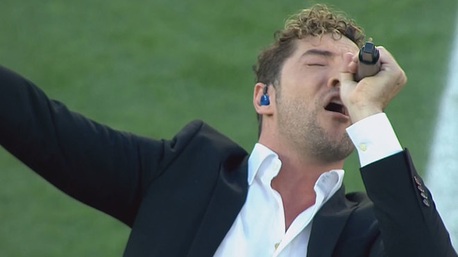 Termina la actuación de David Bisbal. Ahora canta la grada. A punto de saltar los protagonista al verde. ¡¡Vayan tomando asiento que la final empieza enseguida!