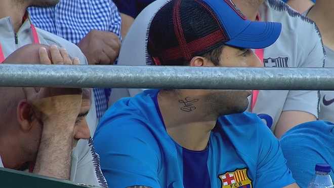 Luis Suárez siguiendo la final desde la grada del Villamarín.