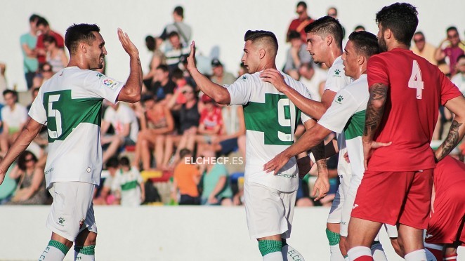 De hecho, el Pichichi de la pasada Segunda abrió el camino del triunfo ante el Atlético Saguntino, equipo de Segunda división B, en el Campo Municipal de Las Fuentes de Aspe culminado con un disparo raso y potente desde fuera del área una buena jugada personal. La victoria la redondeó Darío Guti en la segunda parte.