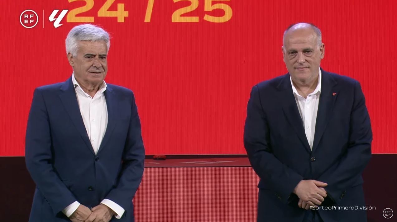 Termina el acto con la imagen de unión de Pedro Rocha y Javier Tebas
