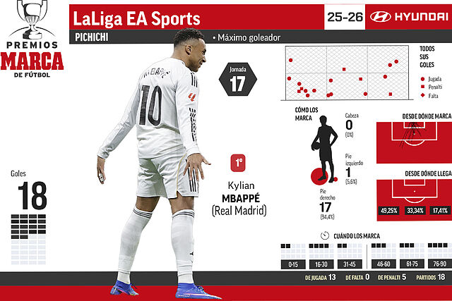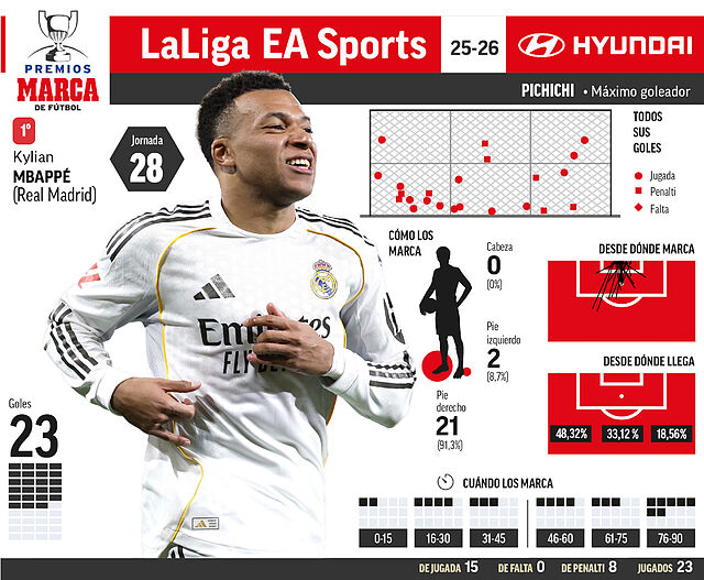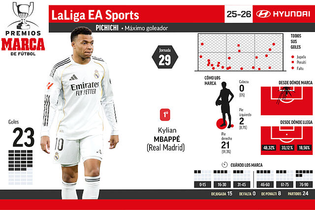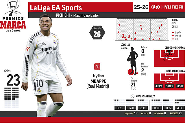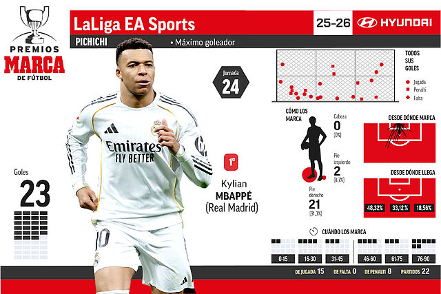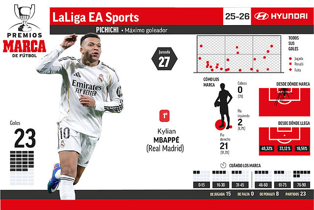 | 1 | Mbappe (R. Madrid) | 23 | 15 | 0 | 8 | 0 |