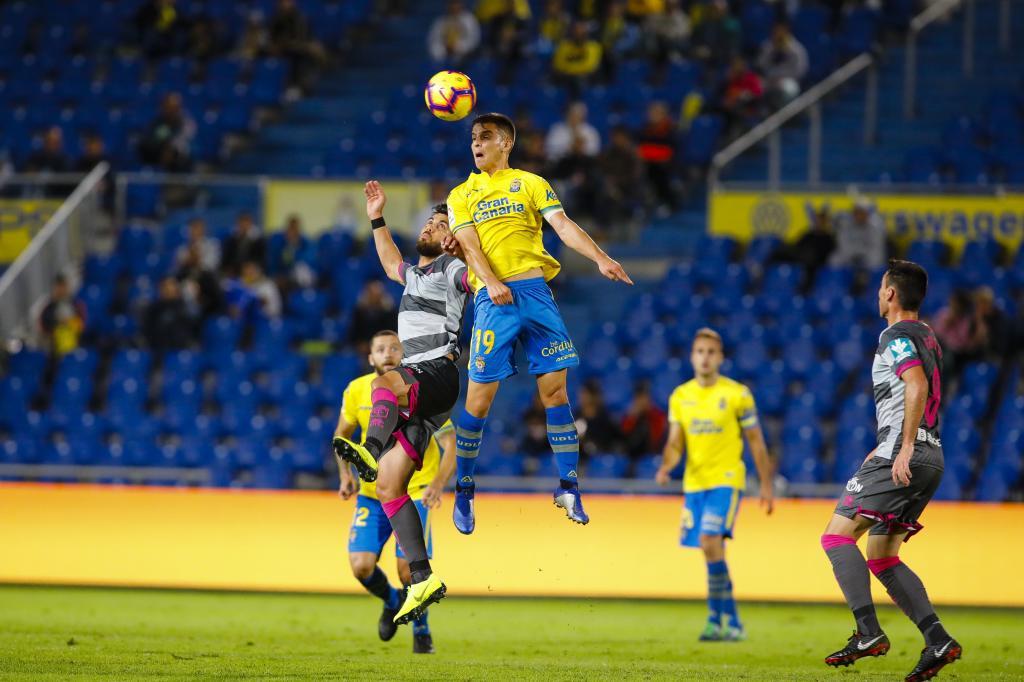 Galarreta intenta llevarse un balón aéreo / Gerardo OjedaY es que la suerte sería cruel con el Granada que, a falta de siete para el final Raúl Fernández le paró un penalti a Antonio Puertas. Pero Dios aprieta, pero no ahoga. En la siguiente jugada Adrián Ramos y aprovechó un error de la zaga canaria para servirle el pase a Rodri que, tras el fallo de Raúl, la mandó al fondo de la red.