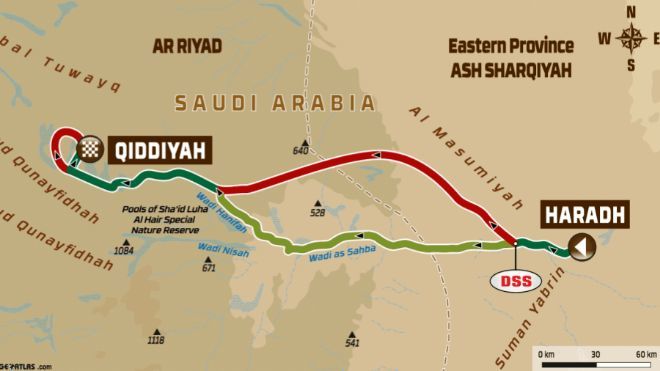 5:29. Los coches tendrán su desenlace a partir de las 7:00. Primero saldrá Peterhansel; luego, Al-Attiyah y justo después, Sainz. Todos separados por seis minutos y con Carlos defendiendo una ventaja de 10