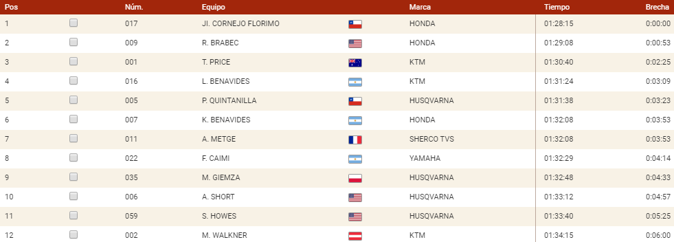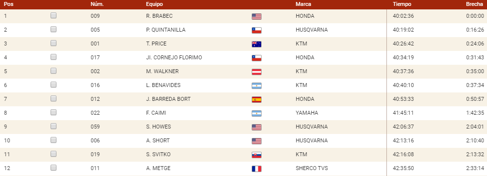 7:28. Brabec acaba con más de 16 minutos de renta sobre Quintanilla en la general. Pablo, digno rival y segundo. Mucho mérito para el chileno