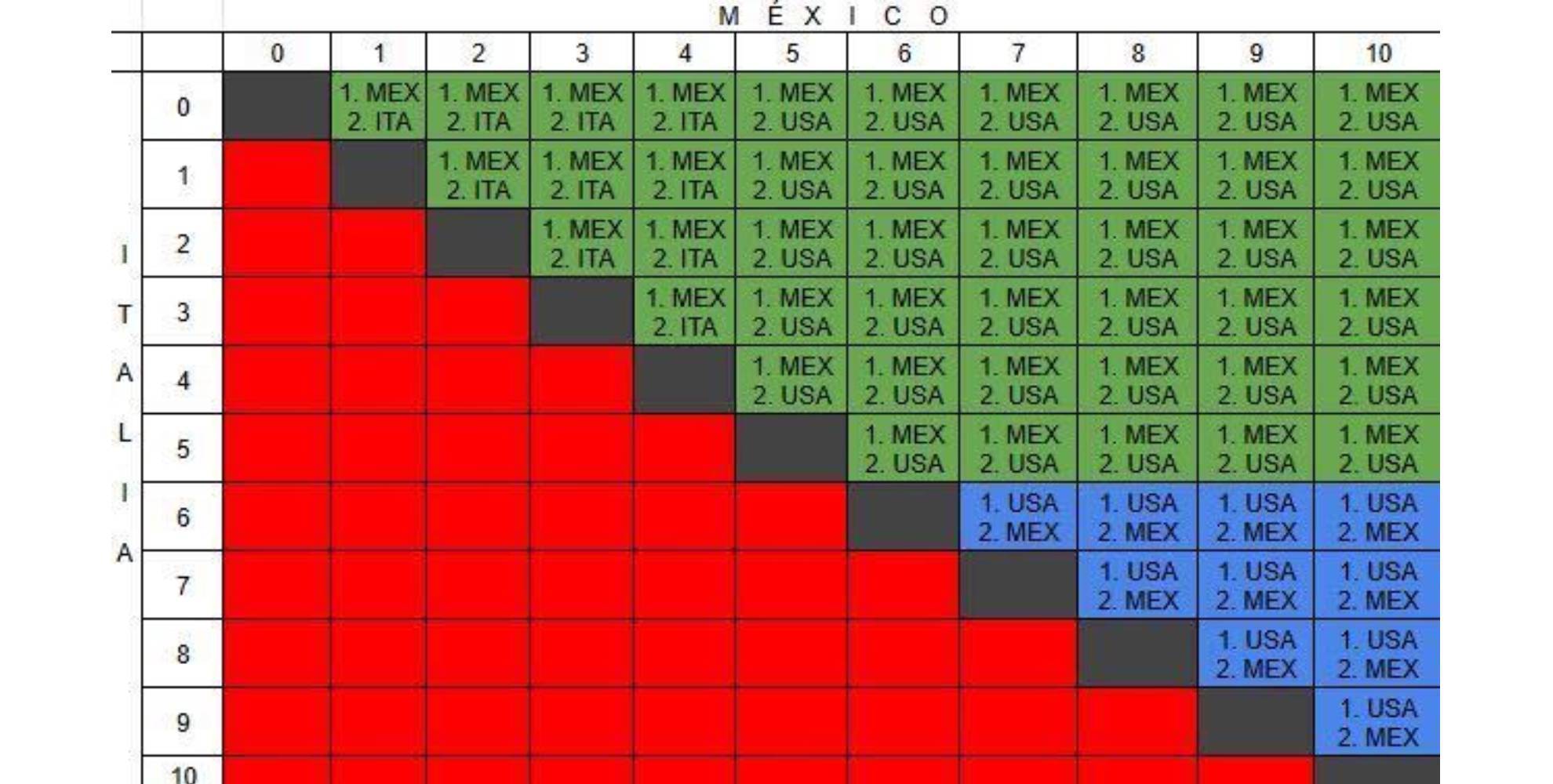 Ahora en juego de nueve entradas, te presentamos un cuadro sinóptico para saber en que lugar que grupo quedan México, Italia y Estados Unidos depndiente el resultado de mañana, siempre y cuando gane el equipo de Benjamín Gil.