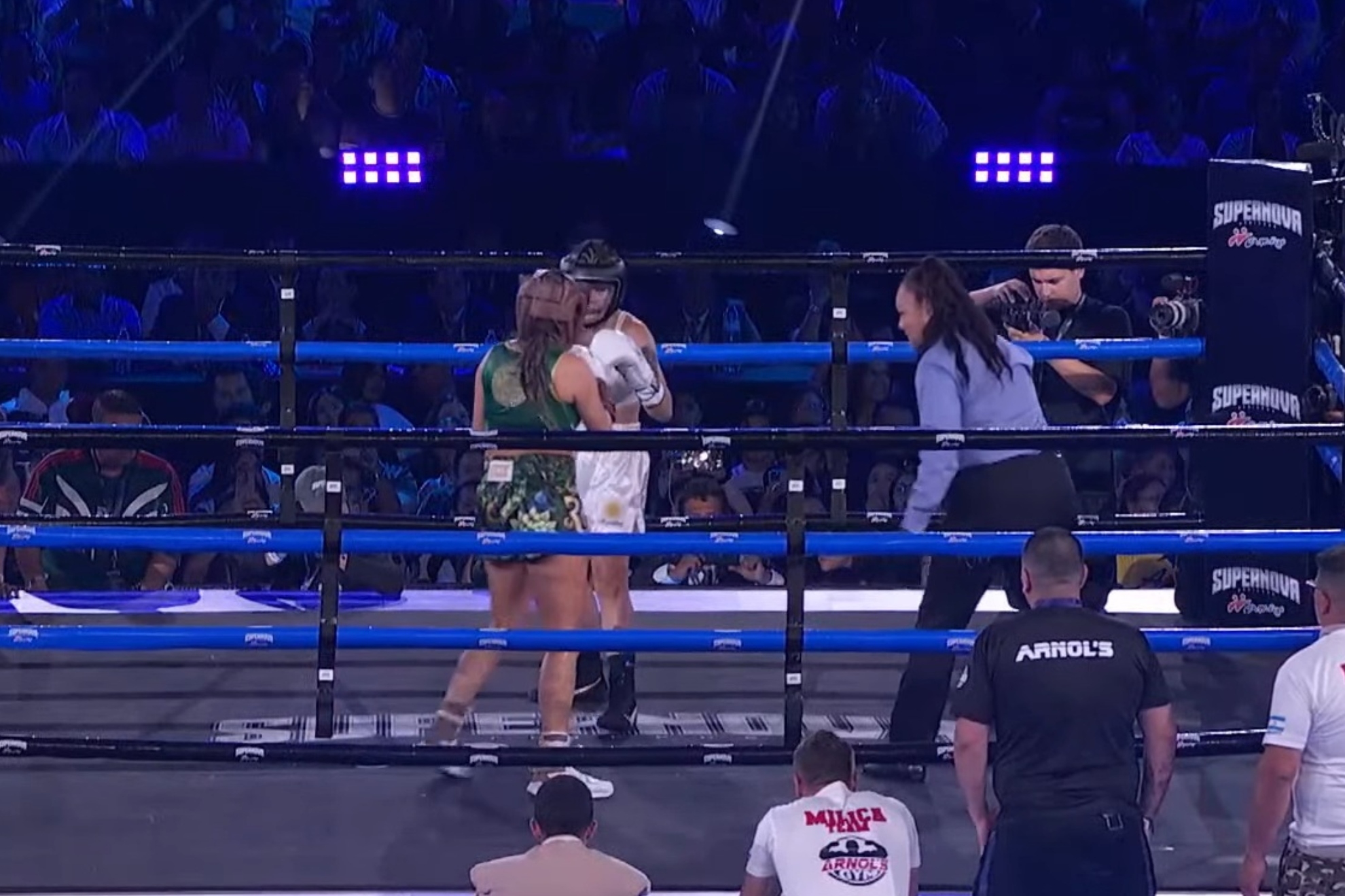 A pesar de la derrota, la espectacular entrada de Mercedes Roa es sin duda uno de los mejores momentos de la función de Supernova Boxing