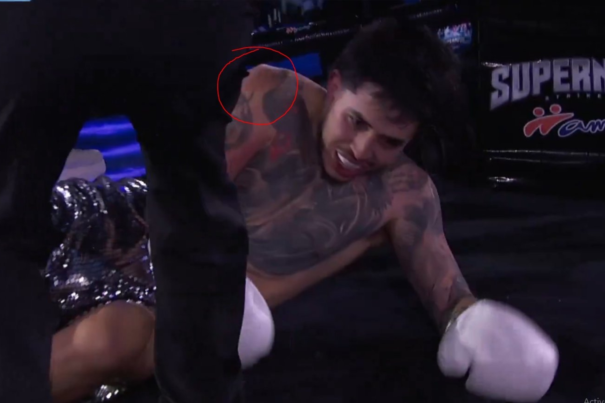 El momento en el que Westcol se disloca el hombro, luego de caer a la lona instantes previos a que el referee decrete el nocaut