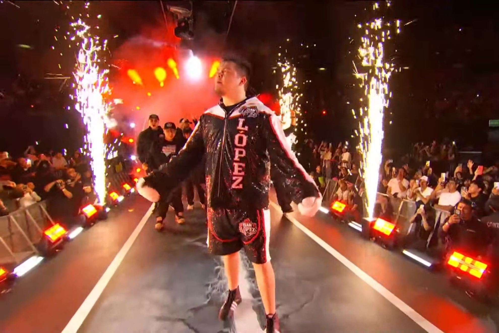 La espectacular entrada al ring de Luis Pride, para muchos, desde aquí empezó a ganar la pelea