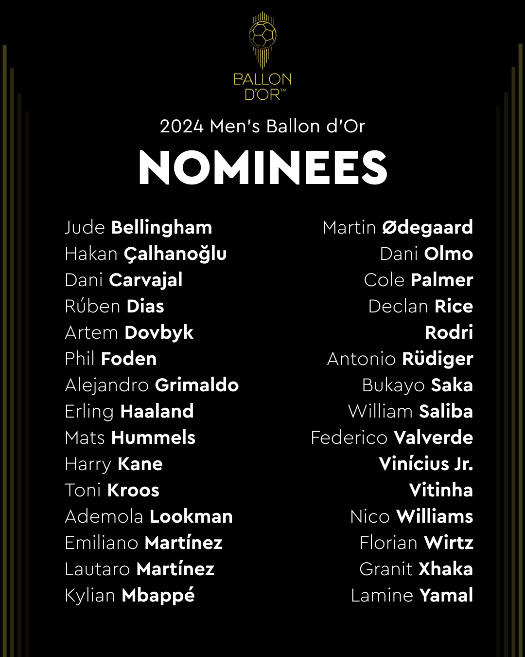Esta semana se anunció la lista de 30 futbolistas nominados. El premio se otorgará en función del rendimiento de cada uno la temporada pasada (del 1 de agosto de 2023 al 31 de julio de 2024).