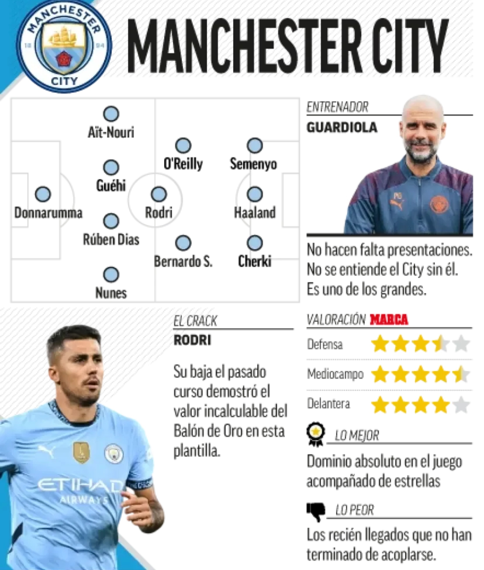 El City llega en un estado de forma extraordinario. Cinco victorias consecutivas en todas las competiciones. En la Premier League se impusieron al Liverpool en Anfield en el tiempo añadido gracias a un penalti de Haaland, golearon al Fulham por 3-0 y vencieron al Newcastle por 2-1.