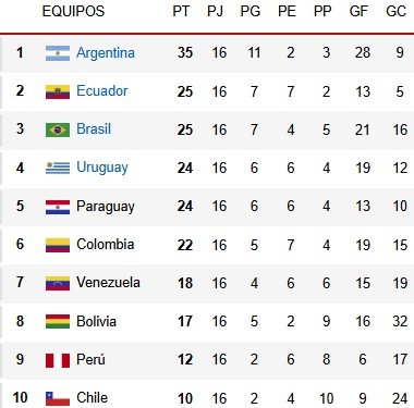 Últimos marcadores Selección de Fútbol de Argentina - Selección de Fútbol de Venezuela