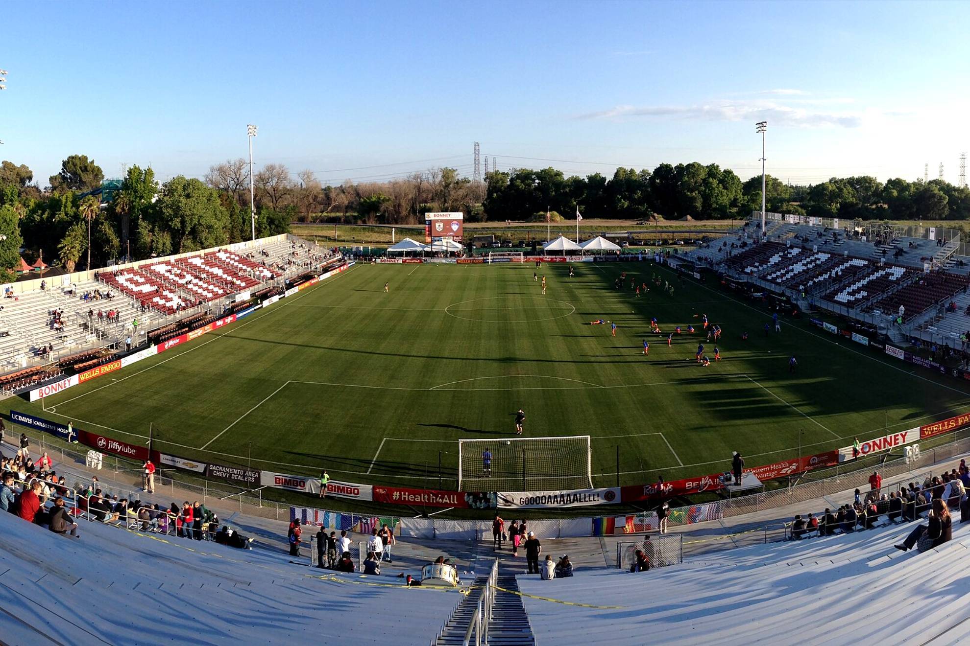 Este es el estadio "Heart Health Park" ubicado en los terrenos de Cal Expo. Sus gradas tienen aforo para 11,569 aficionados y es hogar del equipo Sacramento Republic FC, perteneciente a la Conferencia Oeste del Campeonato USL, segunda división del fútbol estadounidense. ¡Pónganse cómodos, estamos a minutos del arranque del partido!