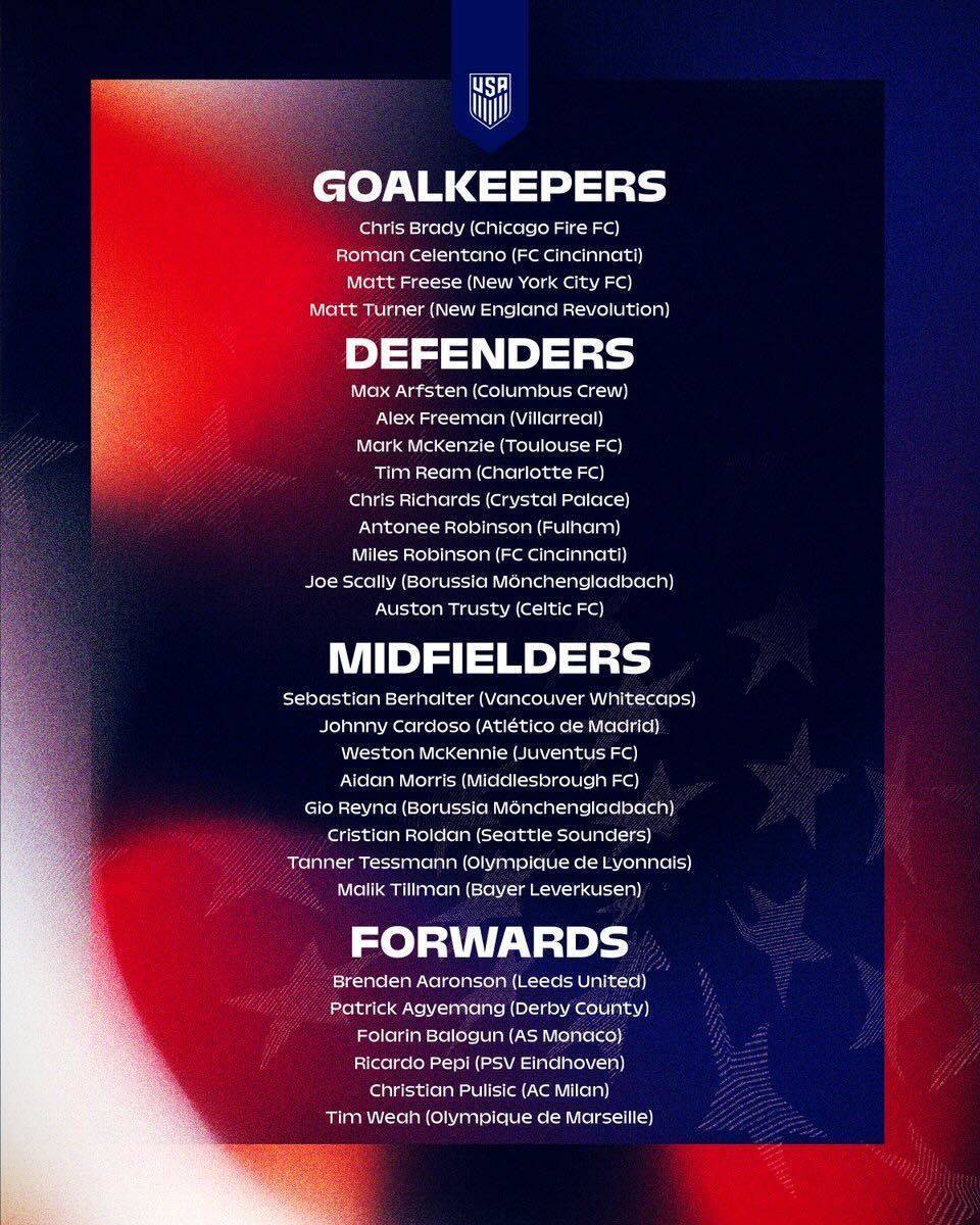Para la siguiente Fecha FIFA, el Team USA llamó a ocho mediocampistas, seis de ellos en Europa, donde destaca Weston McKennie en la Juventus, Gio Reyna en el Borussia Monchengladbach y Johnny Cardoso en el Atlético de Madrid.