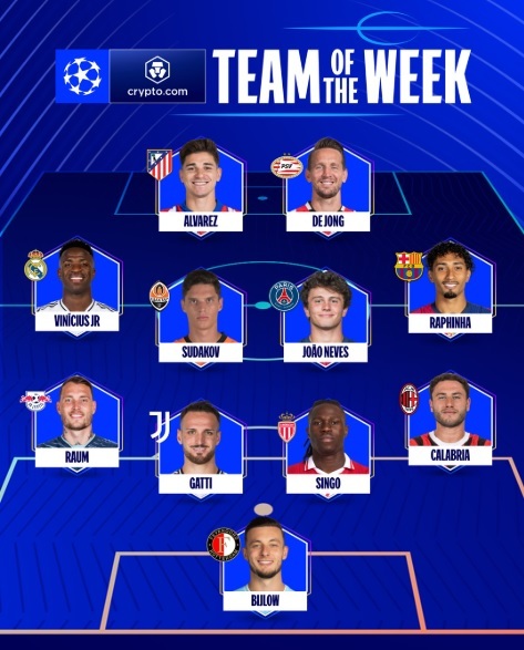 El "Equipo de la Semana" de la UCL fue conformado por los siguientes jugadores: