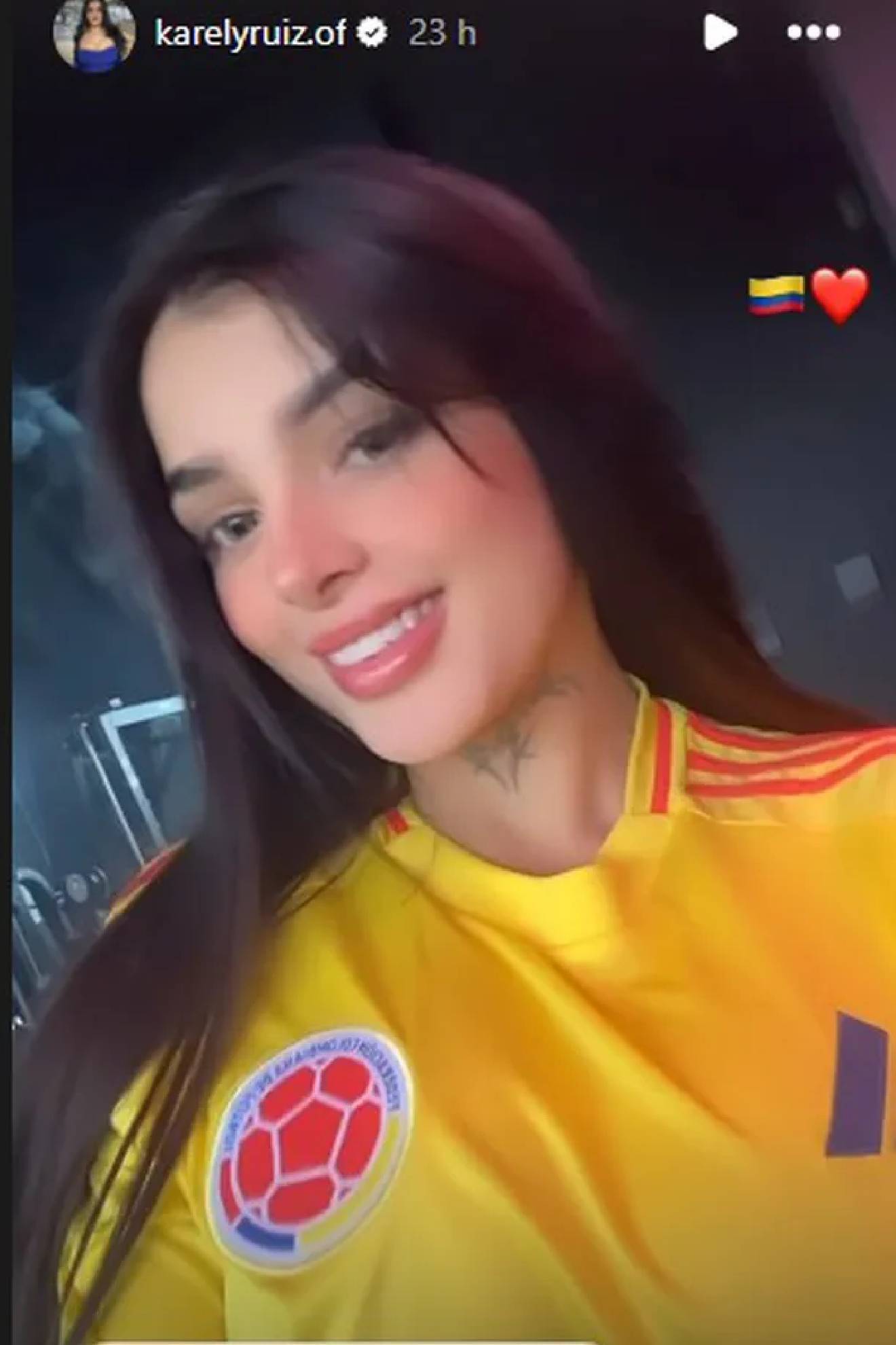Se trata de la Selección Colombia, la cual está comandada actualmente por James Rodríguez, Luis Díaz, Camilo Vargas, Davinson Sánchez, Rafael Santos Borré y más. Es así como Karely Ruiz ha demostrado esto a través de su cuenta oficial de Instagram, donde se dejó ver con la camiseta de los cafetaleros, por lo que claramente irá contra Leo Messi y compañía en esa Final de Copa América.