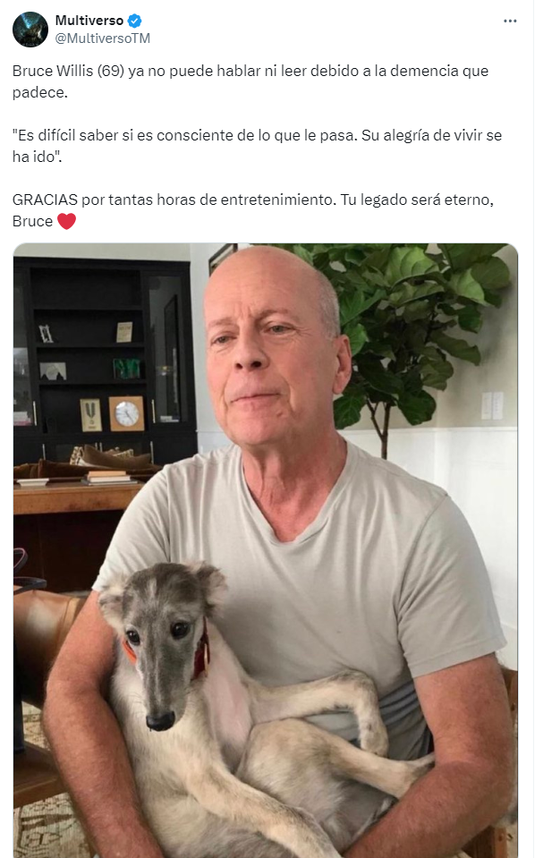 Después de anunciar el diagnóstico de afasia de Willis y su retiro de la actuación en marzo de 2022, la familia reveló en febrero de 2023 que la condición del actor había empeorado hasta convertirse en demencia frontotemporal.