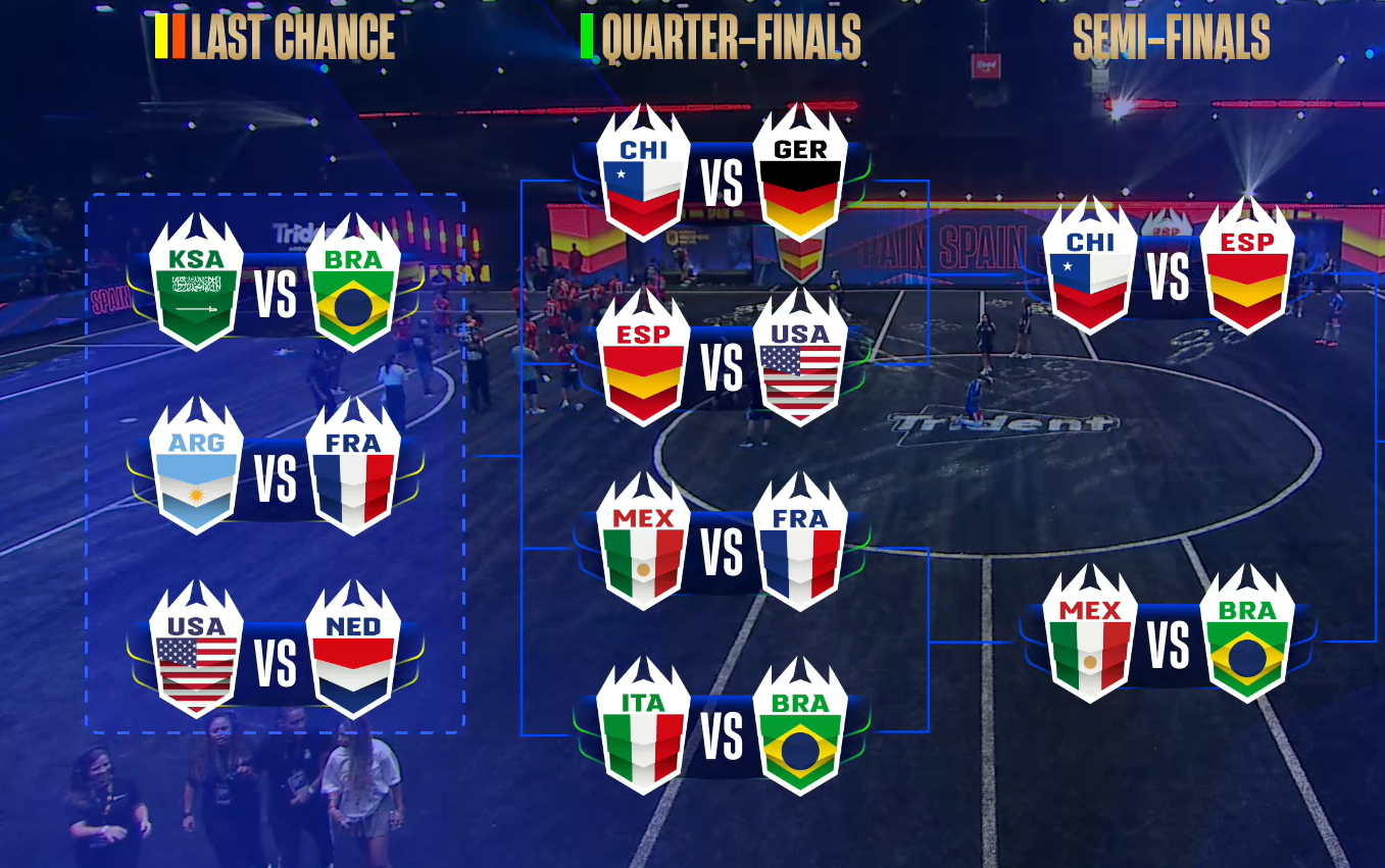 España, gran favorita, país donde surgió la idea de la Kings League, se enfrenta a Chile, sorpresa del torneo y único equipo invicto junto con los españoles.