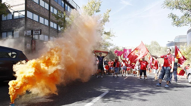 Alrededor de las 13:30, antes de que Javier Tebas compareciera ante los medios para explicar la decisión de la LFP, los autobuses pusieron rumbo de vuelta a Murcia para concluir un día triste y agotador.