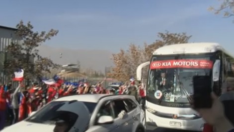 El bus chileno desató la locura a su llegada al Estadio Nacional