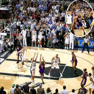 Pero fue precisamente en aquellos playoffs cuando Fisher firmó una de las canastas de su vida. Fue en el quinto partido de la semifinal del Oeste, en San Antonio, cuando con 0.4 décimas para el final y con su equipo uno abajo, anotaba una buzzer beater histórica.