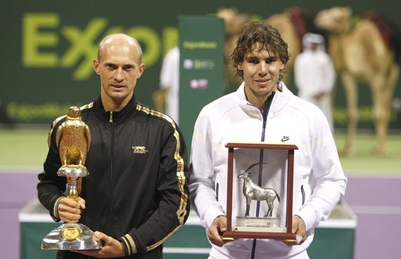 Después de los primeros partidos de Rafael Nadal en 2010 detecto un ambiente de curiosa satisfacción, cuando no contenida euforia. Rafa ha jugado muy bien, ha conquistado su primer título en muchos meses y luego ha jugado la final de Doha. Vale. En el primer caso no podemos olvidar que se trataba de una exhibición. Con mucha calidad, pero una exhibición, de las que suelen ganar quien más en serio se la toma. A Ferrer le ganó fácil, y a Soderling le ganó, pero le costó. Y en Doha, mejor pero peor. Porque con Davydenko, el jugador más en forma de la actualidad, también le costó, y además perdió.
