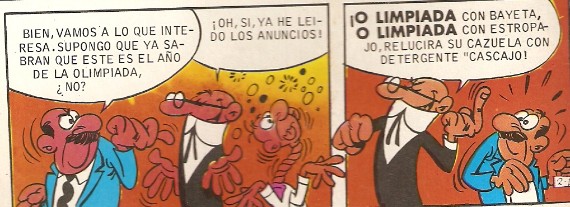 Permítanme un guiño a la nostalgia, pero cada vez que los Juegos Olímpicos asoman en el horizonte yo me acuerdo del sin par Francisco Ibáñez Talavera y espero ansioso la nueva entrega del periplo que sus hijos, Mortadelo y Filemón, llevan realizando por los Juegos Olímpicos desde que debutaron en 1976. La viñeta que anuncia ese debut es para mí uno de los más geniales golpes de humor, así en general, de todos tiempos y que si se hubiera escrito en inglés (es una forma de hablar, ya sé que es intraducible) estaría en las antologías (lo de ‘O limpiada con bayeta…). No exagero. Idolatramos –yo el primero- a Groucho Marx sin reparar en que Luis Sánchez Polack, Tip, hacía lo mismo, pero casi siempre sin guión…