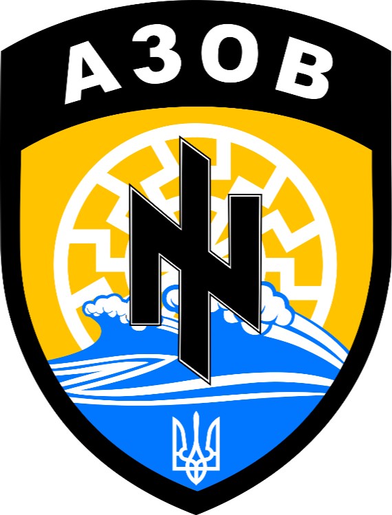 Emblema del batallón Azov, que incluye dos símbolos nacionalsocialistas: La Rueda Solar y sobre ella la runa que era emblema de la II División SS 'Das Reich'.