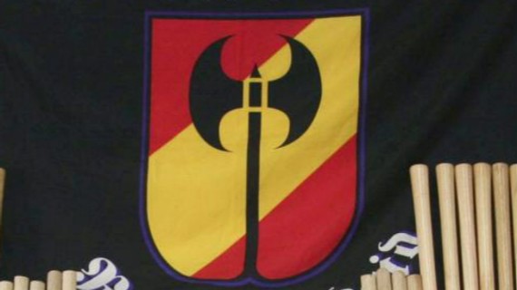 Esta escudo Ultra Sur incautado por la policía incluye, en cambio, la 'Francisca', el hacha franca usada como símbolo por el gobierno filonazi francés de Petain. No es, por tanto, un símbolo vikingo.