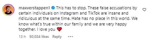 "As a human being, comments and hate deeply affect me and the people around me. I hope this serves as a reminder for people to verify online content before issuing threats. Remember that, as James Clear says, "every action we take is a vote for who we want to be." Let's choose to be better human beings for ourselves and for others," shared the three-time Formula 1 World Champion Red Bull driver.