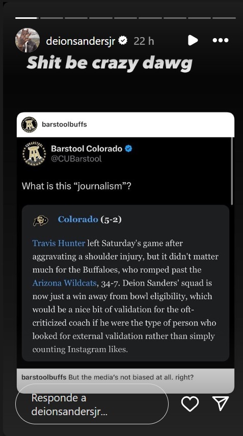 Deion Jr. wasn't alone. In the original post shared by Barstool Colorado on X (formerly Twitter), Buffaloes fans also made their annoyance known with comments like "How is @espn still allowing this shit? Guy clearly has an agenda against CP."