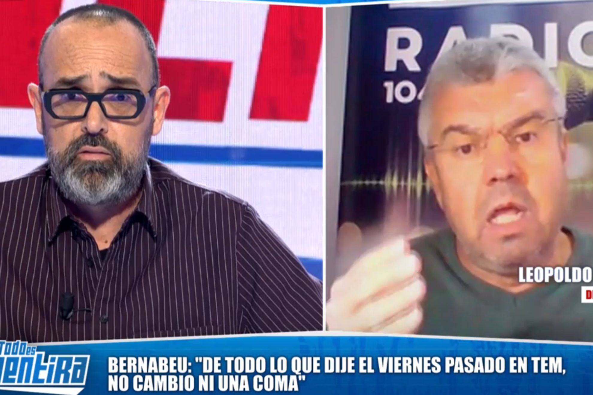 TelevisiónEl 'enganchón' entre Risto Mejide y Leopoldo Bernabéu, periodista cercano a Koldo García: "¿Ahora no te hace gracia a ti? Pues ahora me aguantas tú"Redacción: SMM 0 comentariosEl 'enganchón' entre Risto Mejide y Leopoldo Bernabéu, periodista cercano a Koldo García: "¿Ahora no te hace gracia a ti? Pues ahora me aguantas tú"