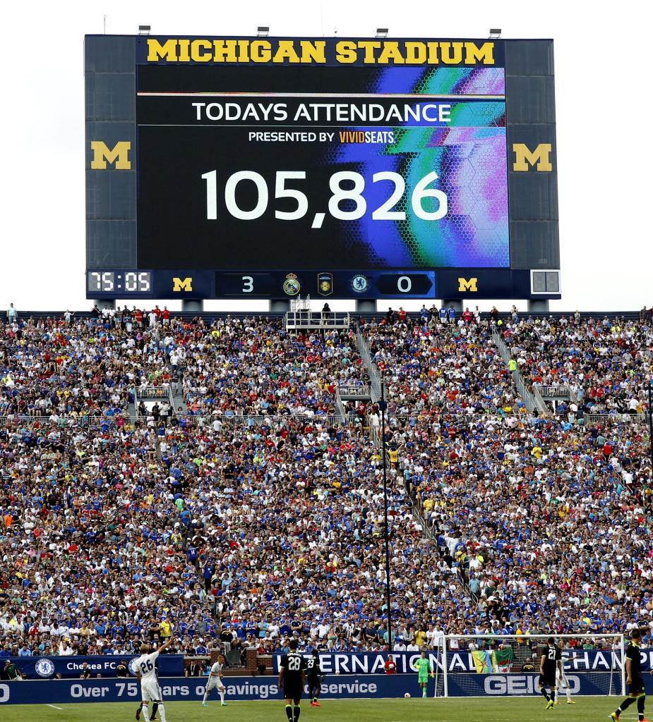 Incidencias: Partido amistoso de la 'International Champions Cup' disputado en el Michigan Stadium, el de mayor capacidad de Estados Unidos, que registró una entrada récord para partido de fútbol con 110.000 espectadores.