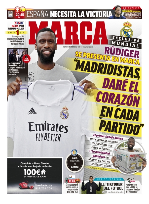 Rüdiger mostró aplomo en su primera rueda de prensa. También felicidad y alegría. Como ya mostró en MARCA, en su primera entrevista como jugador del Madrid, dejó la sensación de que va a encajar perfectamente en el vestuario del Madrid. "Soy un líder, pero Roma no se construyó en dos horas", dijo. Rüdiger tiene ganas, pero conoce los plazos del fútbol. Y también las dificultades que tienen los inicios. "Para eso tienes a la afición del Madrid", le dijo Florentino Pérez, que le definió como uno de los mejores centrales del mundo. Lo mismo opina Ancelotti, el hombre que terminó de convencerlo en el mes de abril en una charla privada. El del italiano fue el último empujó para cerar una operación que empezó en el mes de septiembre de 2021, con la llamada del Madrid a su agente y hermanastro, Sahr Senesie.