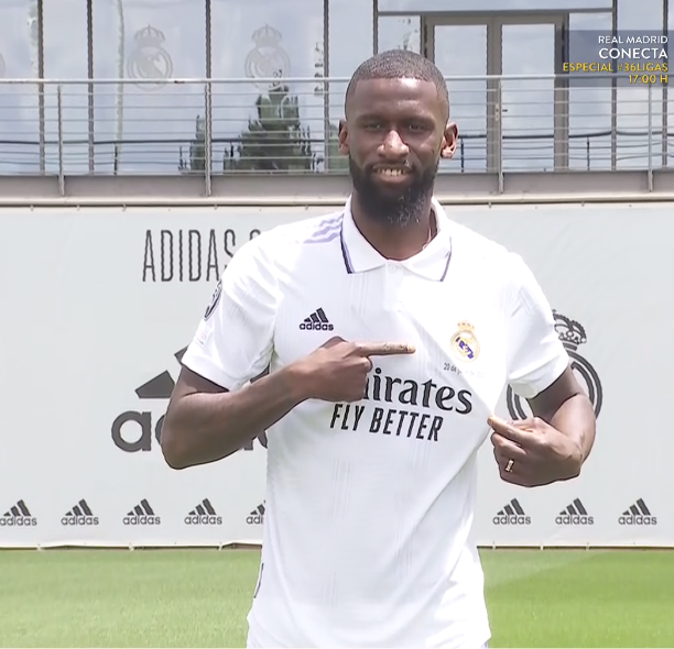 Querido Antonio, hoy formas partes de una familia y un club únicos, el club de las 14 Copas de Europa. Has hecho todo lo posible por estar aquí. Tenías muchas opciones, pero has elegido este escudo para lograr metas que parecían imposibles. Verás que con esta camiseta se viven sensaciones únicas. En el Chelsea has sido referente, referente de un equipo ganador, como en la selección alemana.
