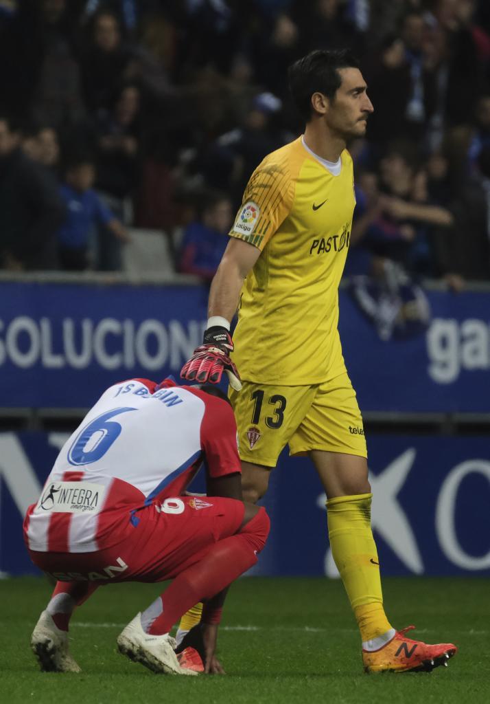 Cada vez que el Oviedo cruzaba el centro del campo temblaban los cimientos del Sporting. Saúl Berjón tuvo otra opción clarísima que salvó Mariño y se olía el peligro en el ambiente. En la otra parte del campo, Neftalí y Pablo Pérez se desesperaban porque no recibían nunca en ventaja. A los visitantes les costaba un mundo pisar el área local y cuando lo hicieron les faltó precisión para poder poner en riesgo la meta de Champagne.