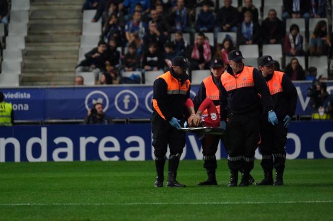 Se ha lesionado Isma Cerro mientras disputaba un balón con Bárcenas y no puede seguir sobre el terreno de juego parece. El jugador del Oviedo había perdido la posición ante el sportinguista pero tras la lesión ha seguido la jugada sin éxito.