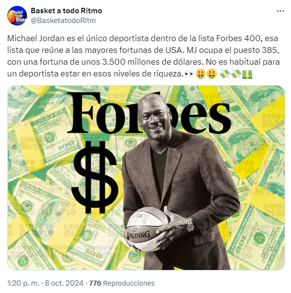Forbes, la centenaria revista especializada en negocios y finanzas, le otorga a Jordan un puesto destacado. Es el único deportista en la Forbes 400, la lista que reúne a las mayores fortunas de Estados Unidos.