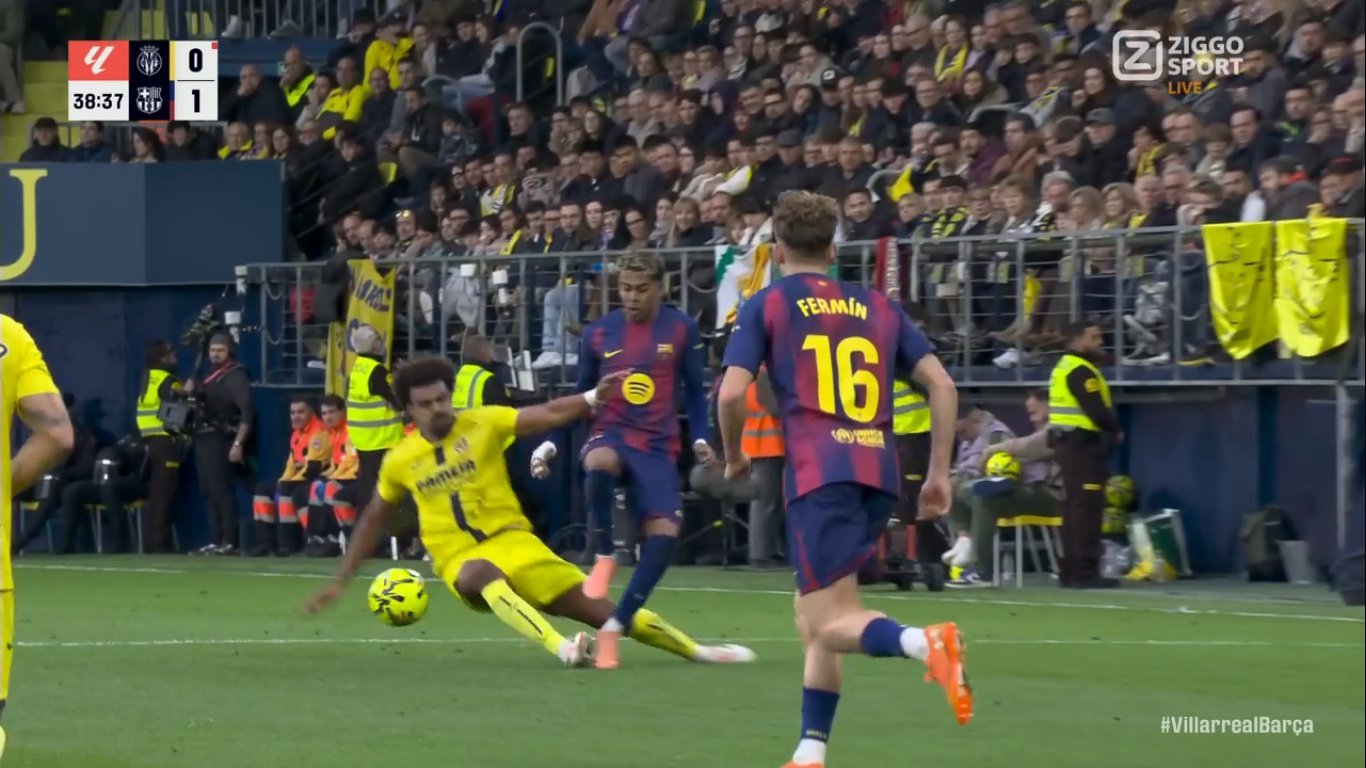 Y cuando mejor estaban, los de Marcelino García Toral recibieron un duro golpe por la expulsión de Renato Veiga, quien, imprudentemente, se aventó desde la tercera cuerda, donde su barrida por la espalda impactó en Lamine Yamal y así, dejar al Villarreal con 10 hombres.
