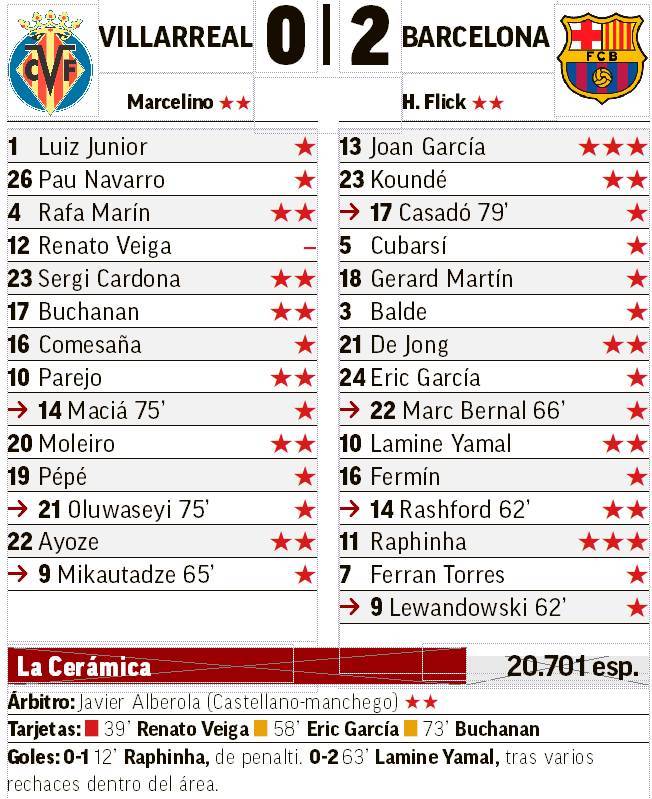 Las estadísticas no fallaron a favor del Barcelona para cumplir en la complicada aduana, como lo es el Estadio La Cerámica, para imponerse 0-2 al Villarreal en lo que fue su último partido del 2025 y con el protagonismo de Lamine Yamal y Raphinha.